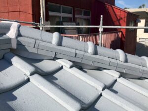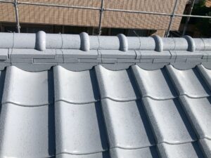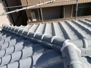 また、棟のジョイント部は漆喰で補強させて頂きました。